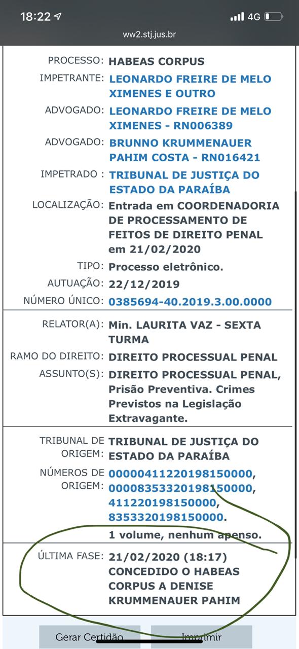 Tiveram o Habeas Corpus concedido: o ex-secretário executivo de Educação, José Artur Viana e a empresária Denise Krummenauer Pahim, que é cunhada da irmã do ex-governador Ricardo Coutinho (PSB), Raquel Coutinho.