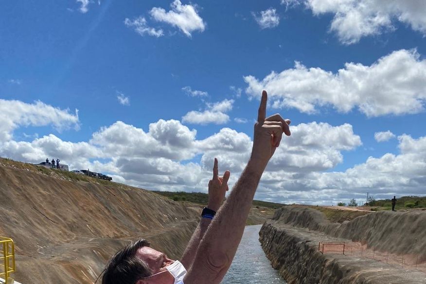 O presidente Jair Bolsonaro inaugurou, na manhã desta sexta-feira (26), um dos trechos da obra de transposição do Rio São Francisco. Em Penaforte (CE), o chefe do Executivo acionou a comporta que permitiu a chegada das águas do Velho Chico ao território cearense.