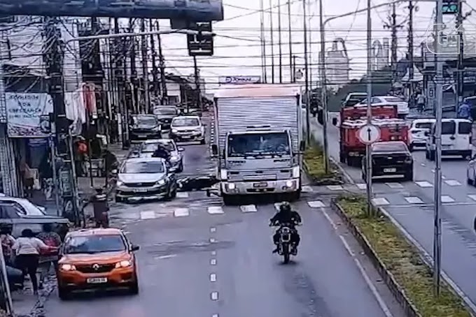 O acidente foi registrado pelas câmeras da Superintendência Executiva de Mobilidade Urbana (Semob-JP). Nas imagens, é possível ver que uma pessoa que estava na rua sinaliza para que o motorista pare o caminhão.
