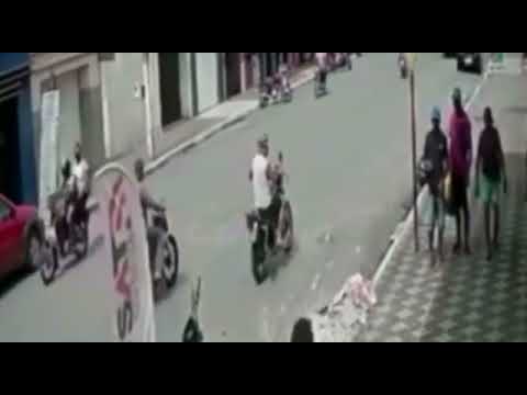 As imagens de um circuito de câmeras de segurança mostram o momento em que o preso consegue escapar do veículo, quando a viatura passa por uma lombada na rua.