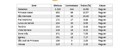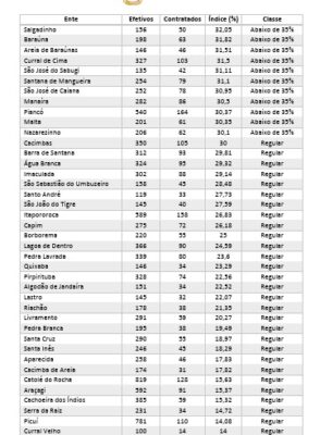 - TCE-PB emite alerta para 30 cidades por excesso de temporários, que ultrapassam até 462% os efetivos