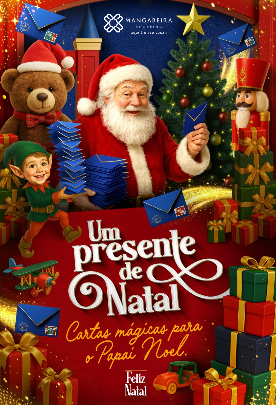 O Mangabeira Shopping traz como tema “Um Presente de Natal”. A proposta é contar a história de como as cartinhas escritas pelas crianças chegam até o Papai Noel. Personagens e símbolos encantados conduzem essa jornada mágica, revelando como esse serviço tão especial e eficiente consegue atender crianças do mundo inteiro.
