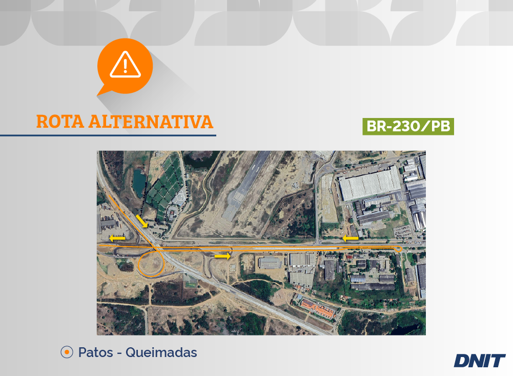 Um trecho da BR-230, em Campina Grande, será interditado para o tráfego de veículos a partir das 8h desta quarta-feira (11). O bloqueio ocorre no km 153,1, alça de acesso à Queimadas, para os veículos que vêm do Sertão pela Alça Sudoeste com destino à Queimadas.