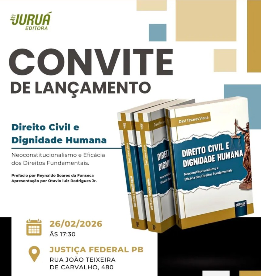 “Como realizar a dignidade humana no direito civil brasileiro?” Essa é a pergunta que norteia a obra do jurista Davi Tavares Viana intitulada “Direito Civil e Dignidade Humana – Neoconstitucionalismo e Eficácia dos Direitos Fundamentais” pela Juruá Editora. O lançamento será nesta quinta-feira (26), às 17h30, na sede da Justiça Federal da Paraíba, localizada no bairro Pedro Gondim, em João Pessoa.