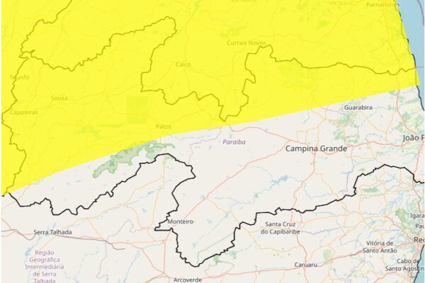 O Inmet (Instituto Nacional de Meteorologia) emitiu um alerta de chuvas intensas para cidades do interior da Paraíba. O alerta de “perigo potencial” é válido até às 23h59 deste sábado (14).