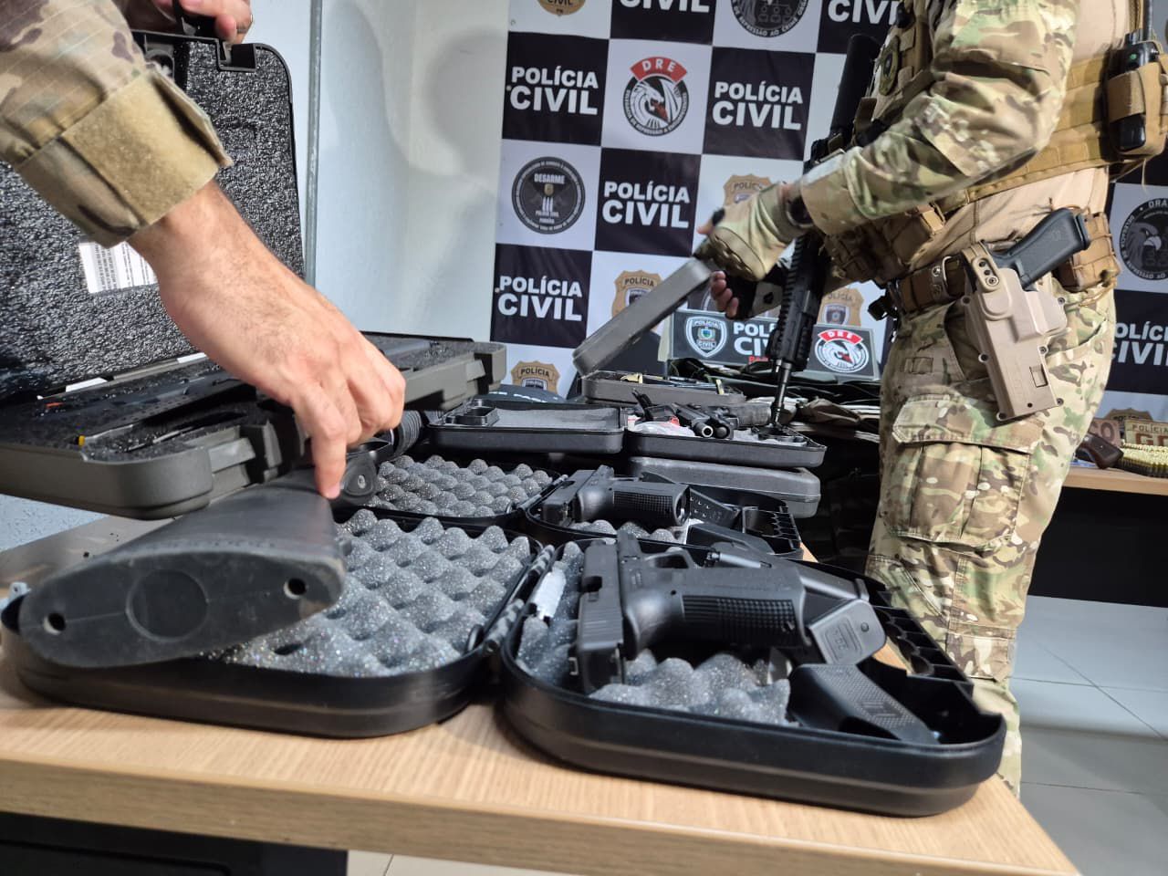 Os investigados poderão responder, entre outros crimes, por comércio ilegal de arma de fogo, organização criminosa e adulteração de sinal identificador de arma de fogo, cujas penas podem ultrapassar dez anos de reclusão.
